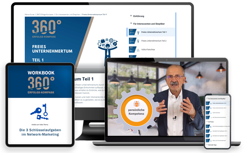 – Dein Kompass für mehr Sicherheit im Umgang als Unternehmer:in im Network-Marketing. In +14 Videolektionen, die Essenz aus über 30 Jahren wissenschaftlicher Beobachtung – Um mit Leichtigkeit, alle Schlüsselaufgaben zu meistern und neue Partner zu überzeugen.